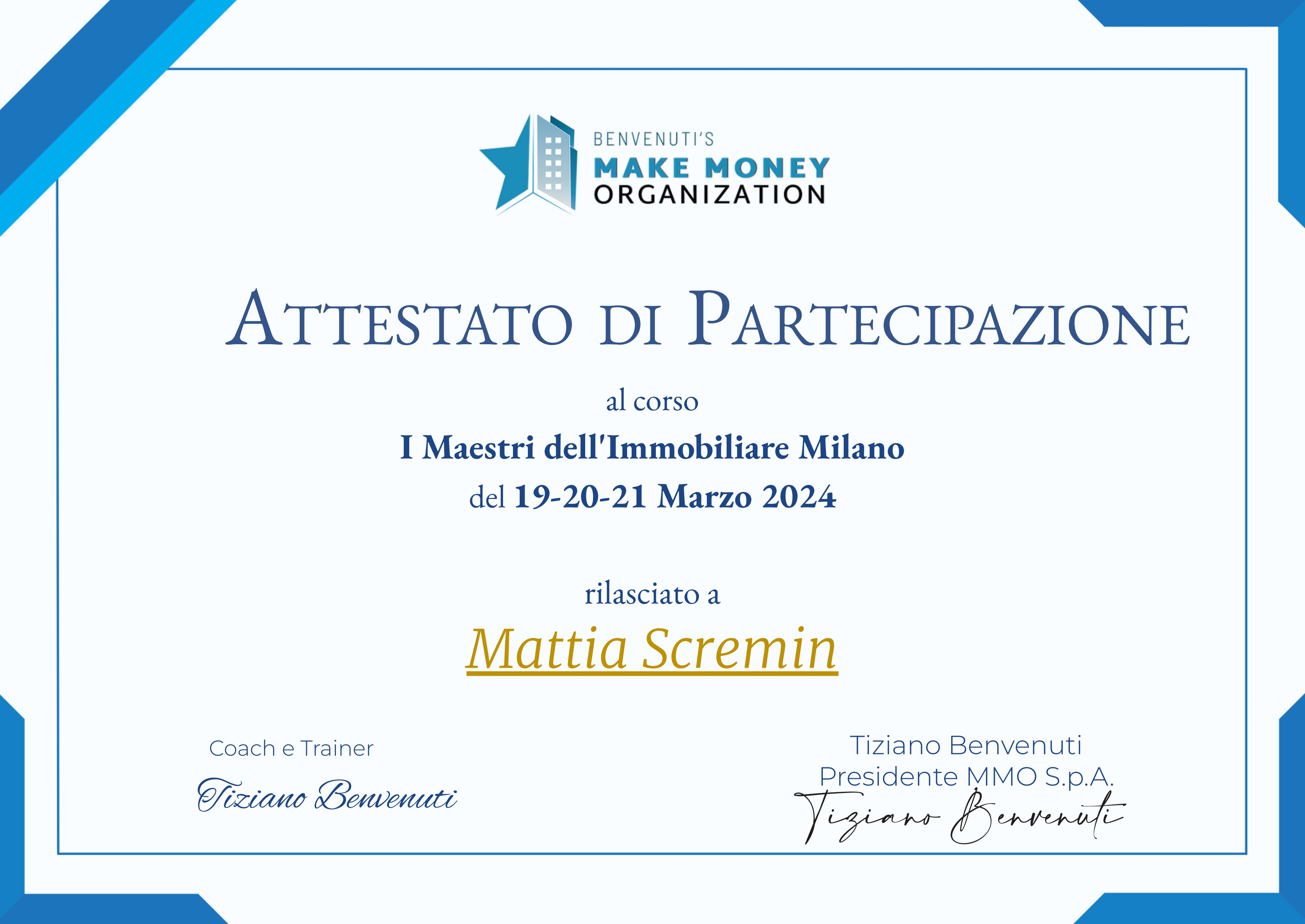Attestato di partecipazione al corso I Maestri dell'Immobiliare